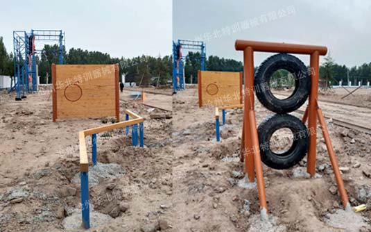 青少年軍事樂園障礙賽單道整體占地:45米長×4米寬,共有雙層輪胎、平衡過橋、障礙墻、跳躍輪胎、匍匐前進、翻越高墻6個項目。  通過攀、爬、跳…